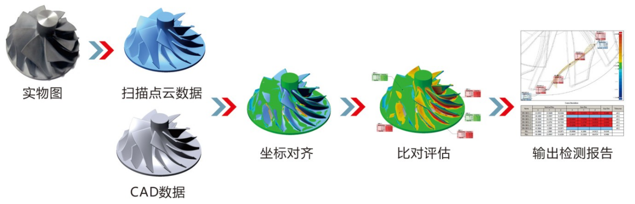 通過(guò)三維掃描技術(shù)可以獲得汽車(chē)零部件的點(diǎn)云數(shù)據(jù),將獲得的點(diǎn)云數(shù)據(jù)和零部件原始的CAD數(shù)據(jù)進(jìn)行比較,可以輕松獲得各個(gè)位置的偏差值,為大曲面,結(jié)構(gòu)復(fù)雜的部件質(zhì)量檢測(cè)提供了好的解決方案。